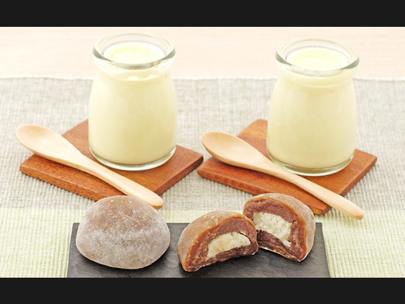 【配送不可:離島】 北海道倶知安町の老舗店「梅月菓子舗」のカフェオレ大福&だちょうプリンセット。 <カフェオレ大福> 一口食...