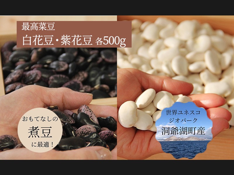 北海道 洞爺湖町産 高級菜豆 2種 白花豆 500g 紫花豆 500g 計1kg 12月中旬...
