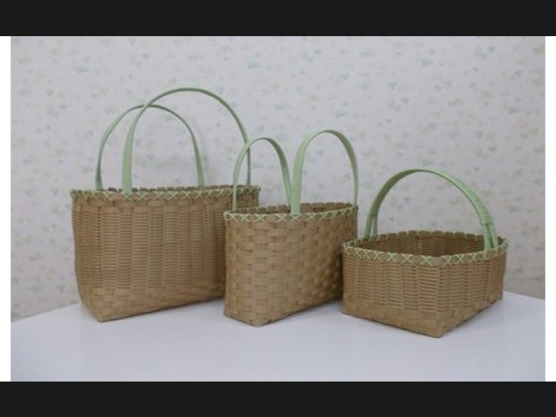 障がい者総合支援法に基づく就労継続支援B型事業所に通う利用者さんが、時間をかけ丁寧に編んだ手づくりのショッピングバック3点セット...