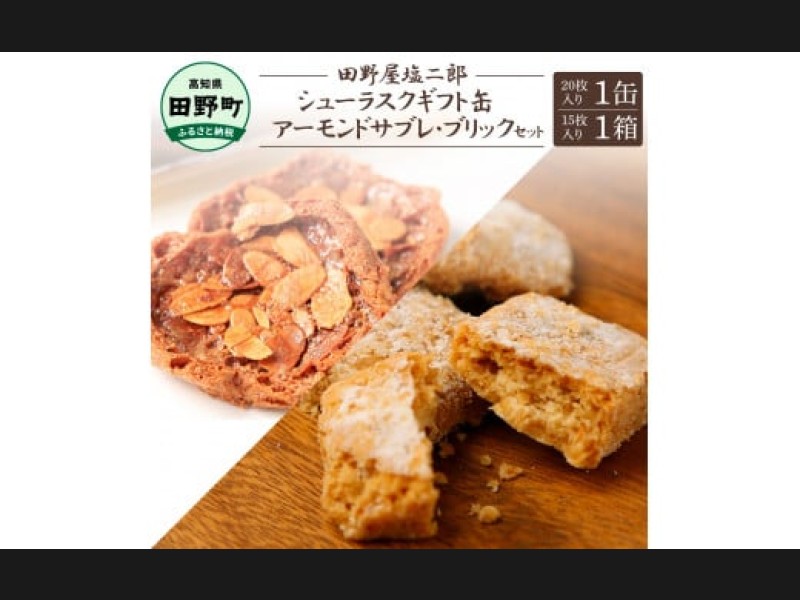 ★田野屋塩二郎完全天日塩★シューラスクギフト缶(20枚入)1缶+アーモンド...