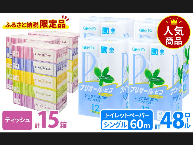 プリオール・ピコ トイレット ペーパー シングル 60m 12ロール 4パック & ...