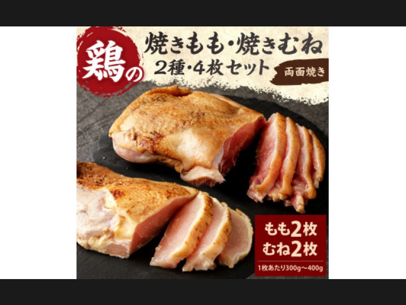 焼きもも・焼きむね セット(もも 2枚・むね 2枚) 鶏肉 1枚あたり300g~400...