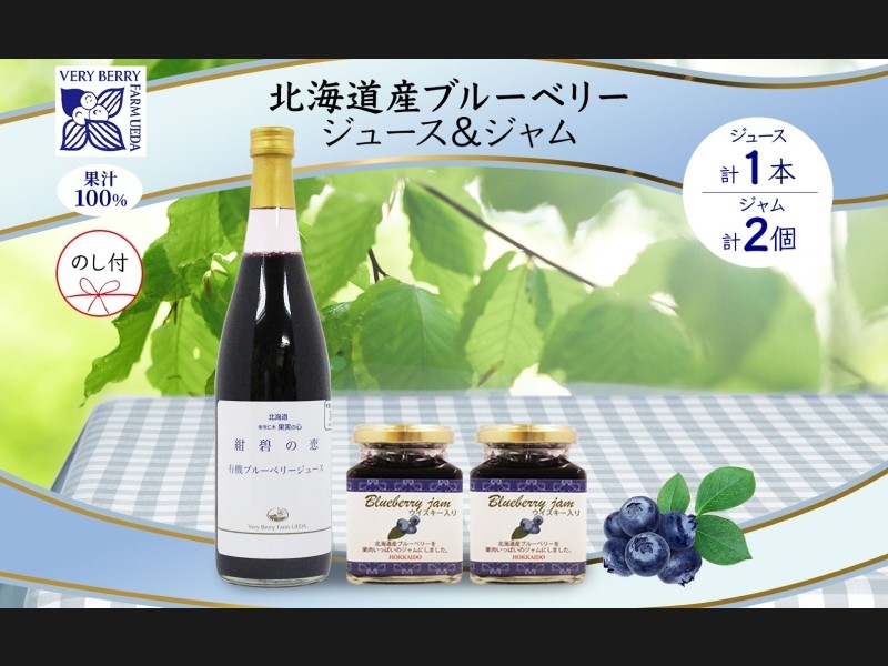 ■北海道産ブルーベリー使用♪「ジャム&ジュース」セット 北海道産ブルーベリーを使用したジャムとジュースをセットにしました! ...