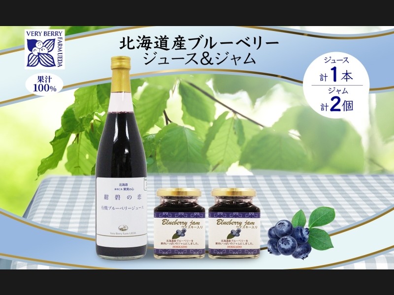北海道産 ブルーベリージュース 710ml 1本 ブルーベリージャム 180g 2個セ...