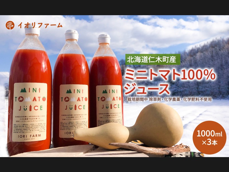 北海道仁木町産 ミニトマト100%ジュース 1000ml×3本 栽培期間中 除草剤・...