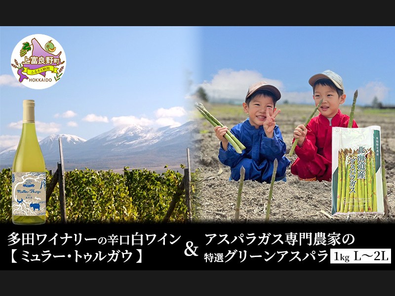上富良野特産品の辛口白ワイン 「ミュラー・トゥルガウ」と新鮮グリーンアスパラをお届けします! ▼多田農園/辛口白ワイン「ミュラ...