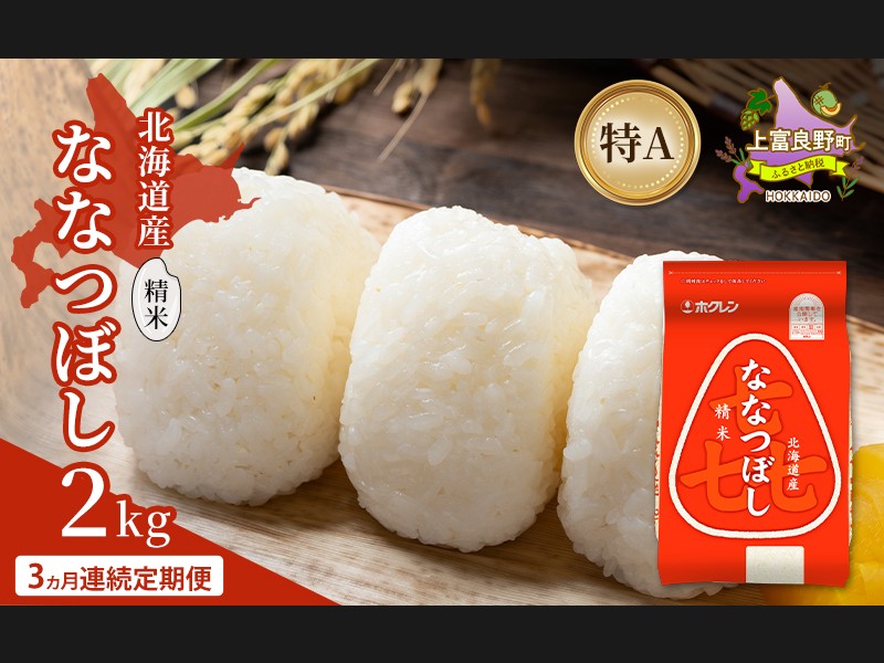 【3ヵ月連続定期便】北海道産 喜 ななつぼし 精米 2kg 米 特A 獲得 白米 ...