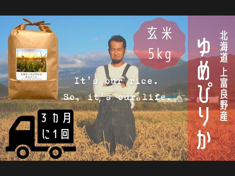 ◆3ヶ月に1回お届け/計3回定期便◆ゆめぴりか 玄米 5kg /北海道 上富良野産 ...