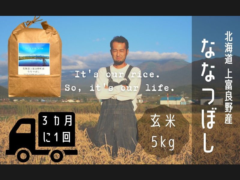 ◆3ヶ月に1回お届け/計3回定期便◆ななつぼし 玄米 5kg /北海道 上富良野産 ...