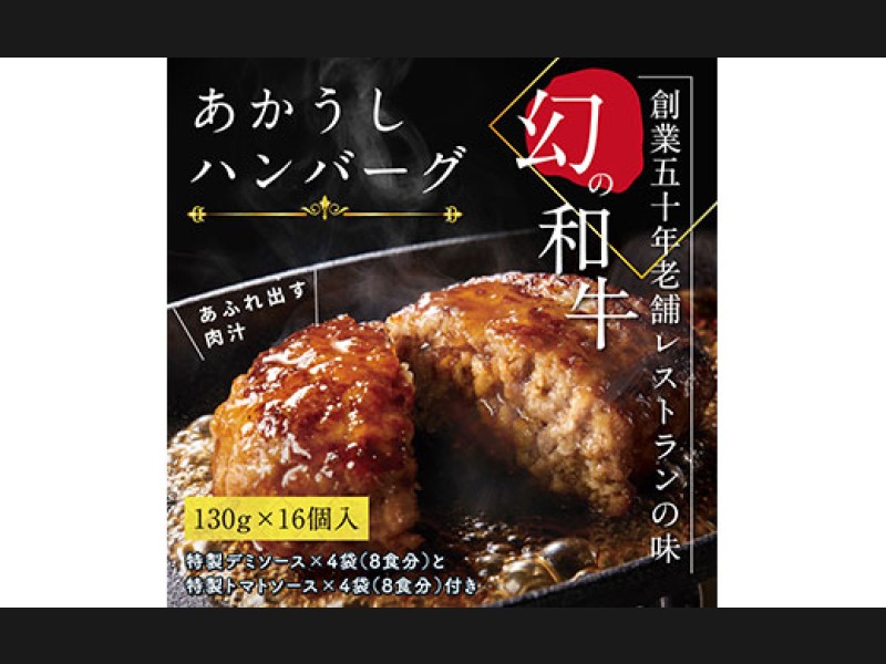 CDM006 創業50年老舗レストランの幻の和牛あかうしハンバーグ130g×16コ...