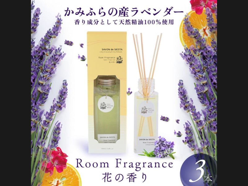 香りのよい、北海道上富良野(かみふらの)町のラベンダー油を配合した、花畑をイメージした香りのルームフレグランス(リードディフュ...