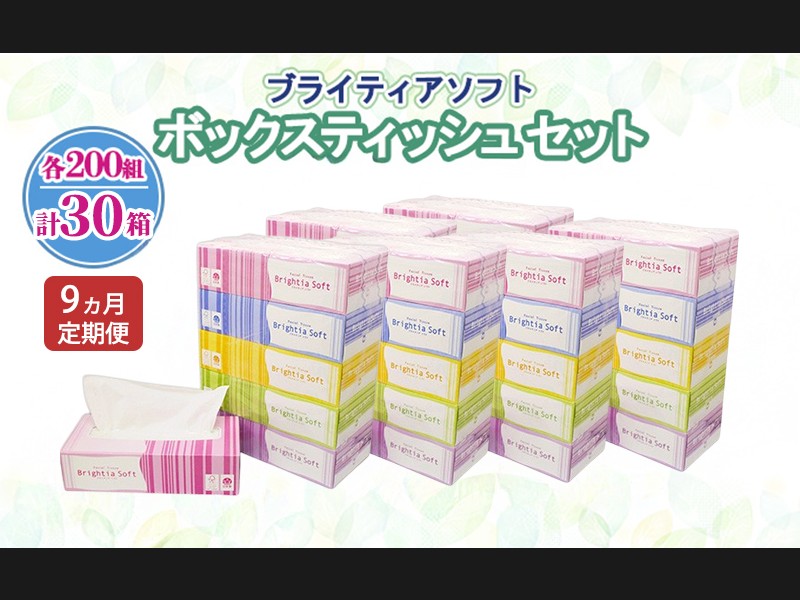 定期便 全9回 ブライティア ソフト ボックスティッシュ 200組 400枚 30箱 ...
