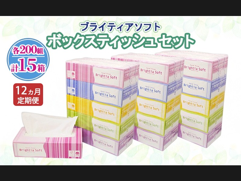 定期便 全12回 ブライティア ソフト ボックスティッシュ 200組 400枚 15箱...