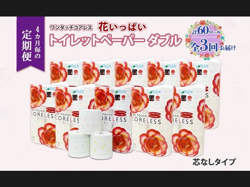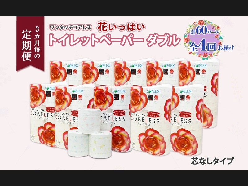 北海道 定期便 4ヵ月毎 全3回 ワンタッチコアレス 花いっぱい トイレット...