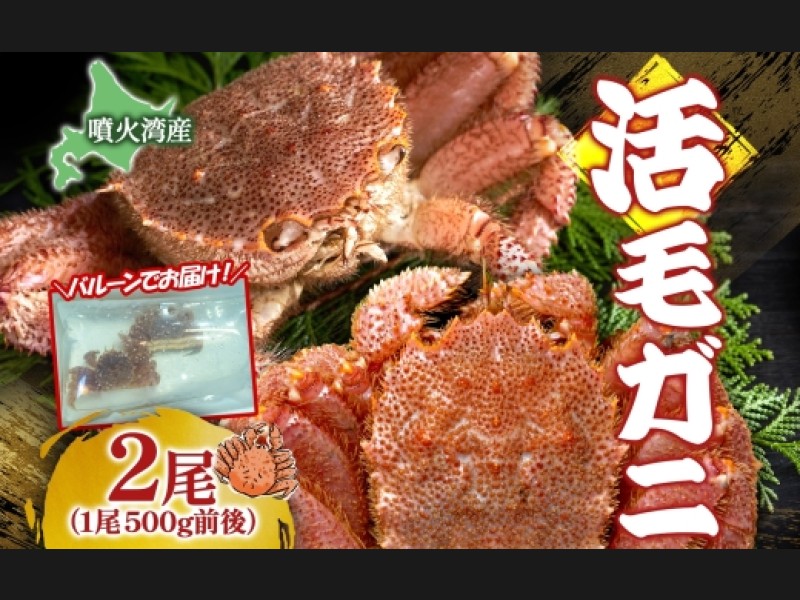 先行受付 北海道 噴火湾産 活毛がに 500g前後×2尾 2026年6月下旬~7月上旬...