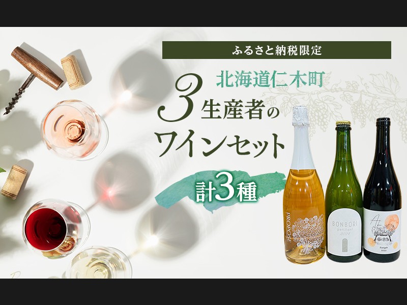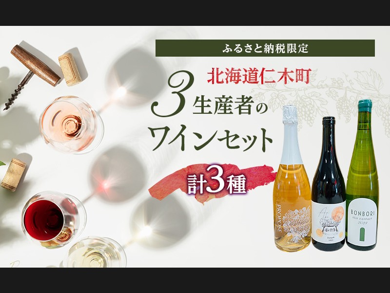 【北海道仁木町 ふるさと納税限定ワインセット】3生産者 ワイン 3本 セッ...