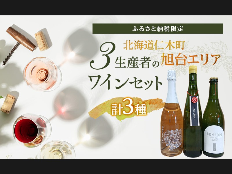 【北海道仁木町 ふるさと納税限定ワインセット】旭台エリア 3生産者 ワイ...
