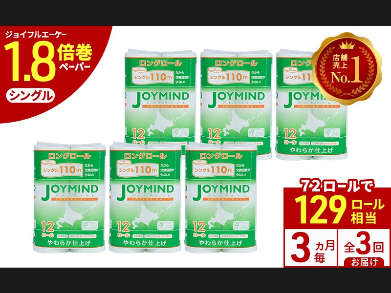 定期便 3ヵ月毎 全3回 ジョイマインドトイレットペーパー ロングロール シ...