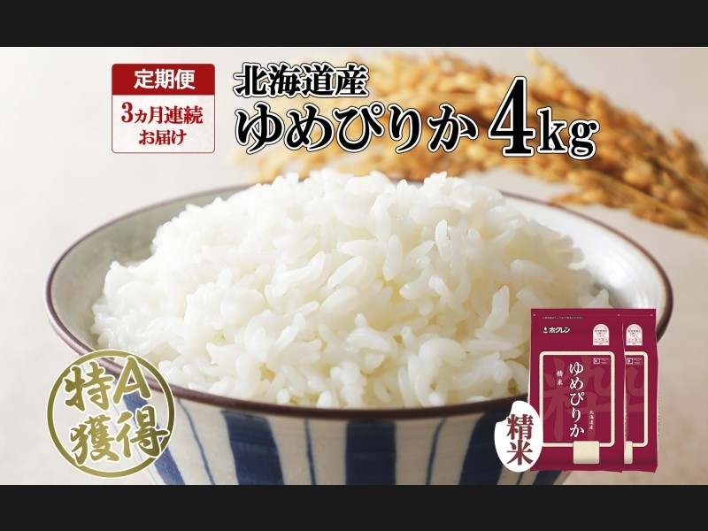 定期便 3ヵ月連続3回 北海道産 ゆめぴりか 精米 4kg 米 特A 獲得 白米 ご...