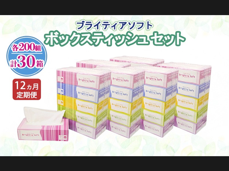 定期便 全12回 ブライティア ソフト ボックスティッシュ 200組 400枚 30箱...
