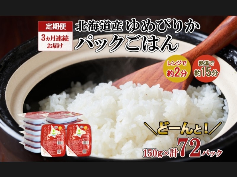 定期便 3ヶ月連続3回 北海道産 ゆめぴりか パックごはん 150g 72パック 米...