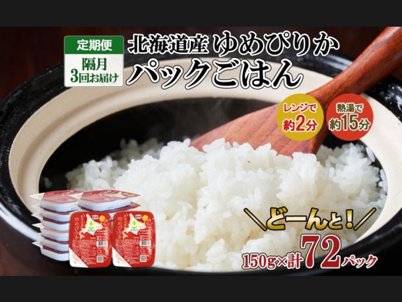 定期便 隔月3回 北海道産 ゆめぴりか パックごはん 150g 72パック 米 白米...