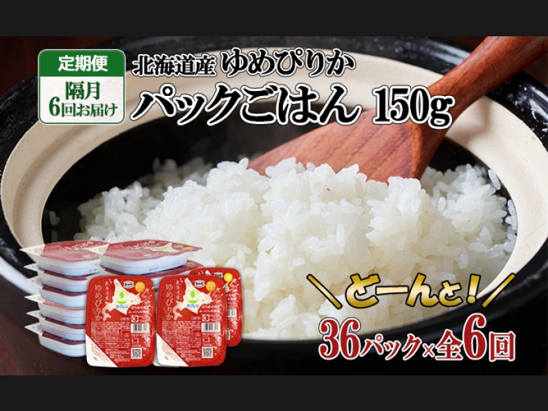 定期便 隔月6回 北海道産 ゆめぴりか パックごはん 150g 36パック ホクレ...