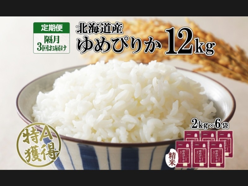 定期便 隔月3回 北海道産 ゆめぴりか 精米 12kg 米 特A 獲得 白米 ごはん ...