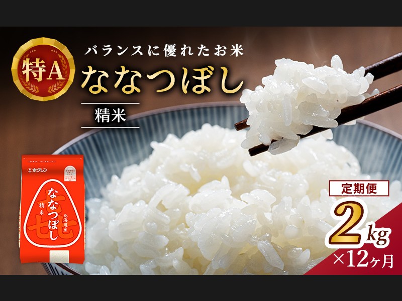 12ヵ月 定期便 (精米2kg)ホクレン喜ななつぼし(精米2kg×1袋)袋はチャック...