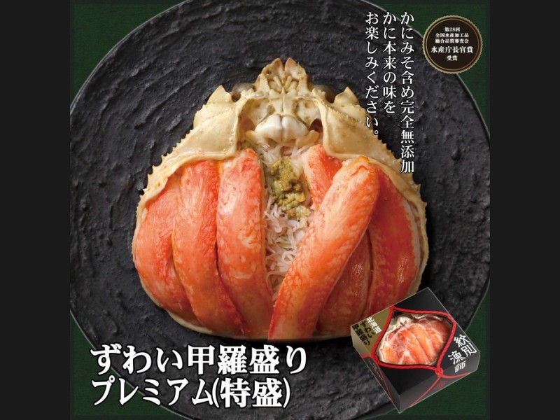 鮮度をそのままに茹で上げたずわいがにを使用した大満足の食べ応え。ぷるんと弾力性のある棒肉、ほぐし身、かにみそ。無添加だからこそ...