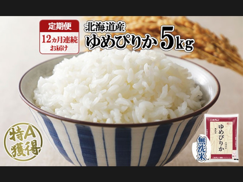 定期便 12ヶ月連続12回 北海道産 ゆめぴりか 無洗米 5kg 米 新米 特A 白米...