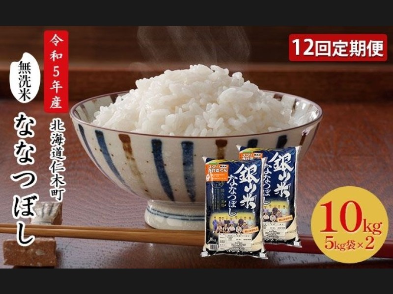 12ヵ月 定期便 銀山米研究会の無洗米<ななつぼし>10kg(5kg×2袋) ライ...