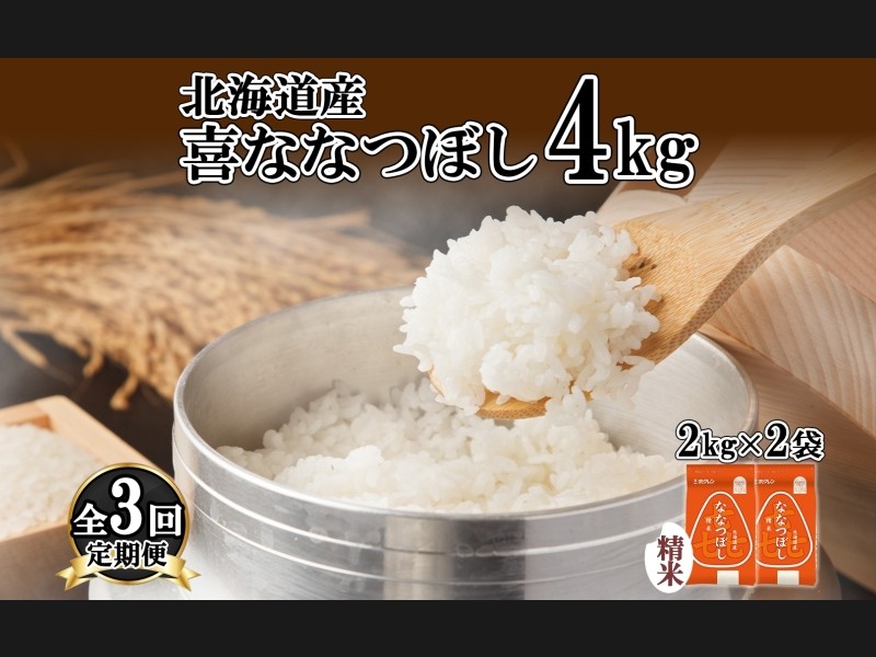 定期便 3ヵ月連続3回 北海道産 喜ななつぼし 精米 4kg 米 特A 白米 ななつ...
