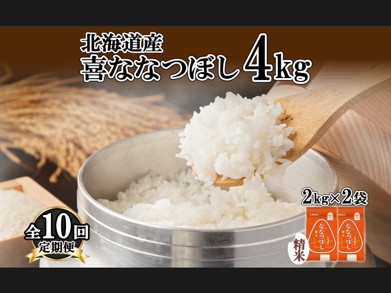 定期便 10ヵ月連続10回 北海道産 喜ななつぼし 精米 4kg 米 特A 白米 なな...