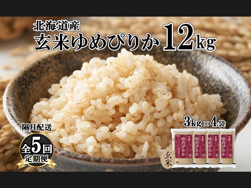 定期便 隔月5回 北海道産 ゆめぴりか 玄米 12kg 米 特A 獲得 小分け お米 ...