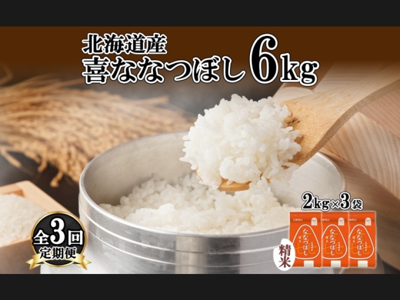 【3ヵ月連続/全3回お届け定期便】 北海道のブランド米「喜ななつぼし」精米 計6kg(2kg×3袋 )×全3回をお届けします。 品質保証マークが...