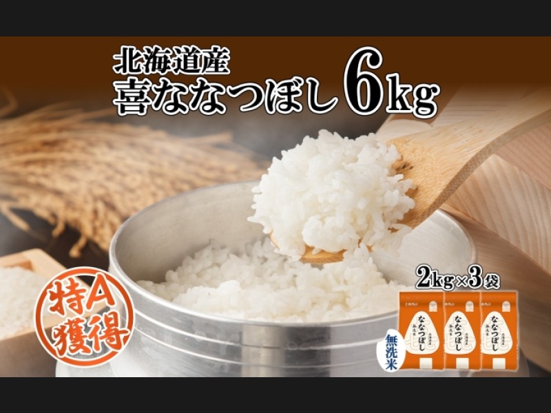 北海道産 喜ななつぼし 無洗米 2kg×3袋 計6kg 米 特A 白米 小分け お取り...