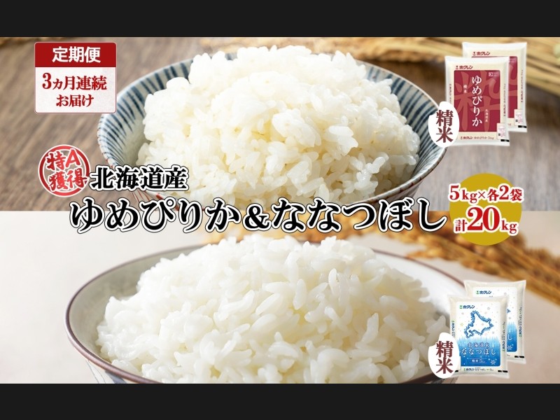【3ヵ月連続/全3回お届け定期便】 北海道産のブランド米「ゆめぴりか・ななつぼし」の食べ比べセット 計20kg(5kg×各2袋)をお届け! 品...