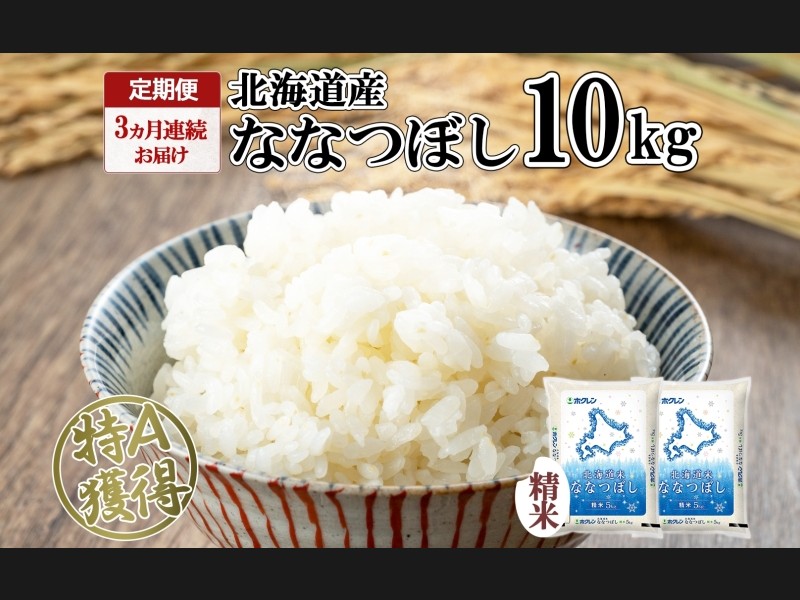【3ヵ月連続/全3回お届け定期便】 北海道産の特A米『ななつぼし』精米 10kg(5kg×2袋)×全3回をお届け! ほどよい甘みと粘りのバランスが...
