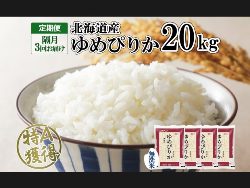定期便 隔月3回 北海道産 ゆめぴりか 無洗米 20kg 米 特A 獲得 白米 お取...