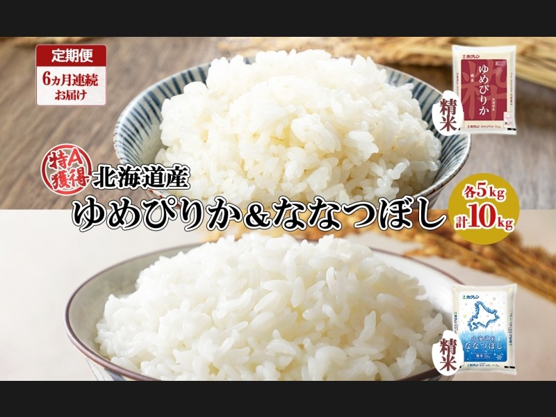 【6ヵ月連続/全6回お届け定期便】 北海道産のブランド米「ゆめぴりか・ななつぼし」の食べ比べセット 計10kg(5kg×各1袋)をお届け! 品...