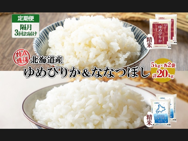 【ひと月おき /全3回お届け】 北海道産のブランド米「ゆめぴりか・ななつぼし」の食べ比べセット 計20kg(5kg×各2袋)をお届け! 品質保...