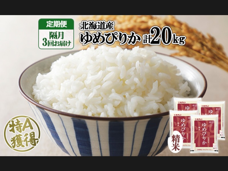 定期便 隔月3回 北海道産 ゆめぴりか 精米 20kg 米 特A 白米 お取り寄せ ...
