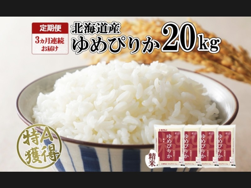 定期便 3ヶ月連続3回 北海道産 ゆめぴりか 精米 20kg 米 特A 獲得 白米 お...