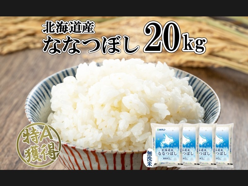 北海道産の特A米『ななつぼし』無洗米 20kg(5kg×4袋)をお届け! ほどよい甘みと粘りのバランスがよく、冷めても美味しいためお弁当にお...
