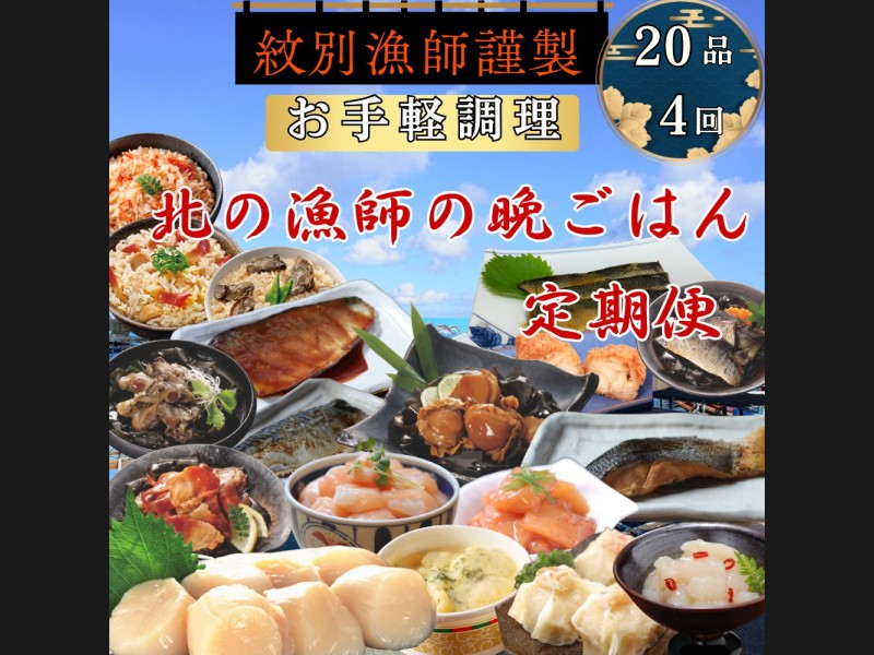 100-87 【北海道】北の漁師の晩ごはん 定期便 20品 全4回【紋別漁師食...