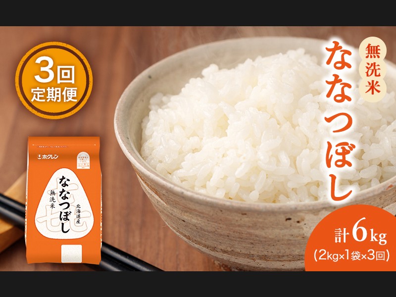 3ヵ月 定期便 (無洗米2kg)ホクレン喜ななつぼし(無洗米2kg×1袋)袋はチャッ...