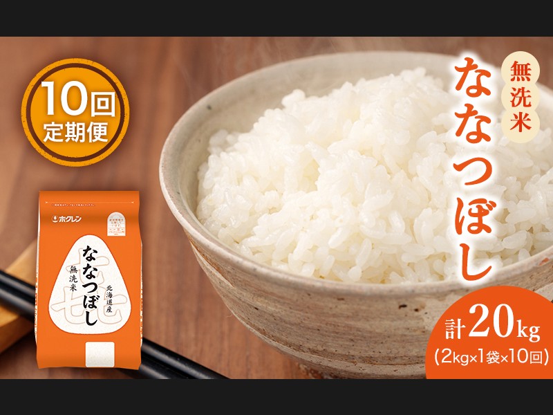 10ヵ月 定期便 (無洗米2kg)ホクレン喜ななつぼし(無洗米2kg×1袋)袋はチャ...
