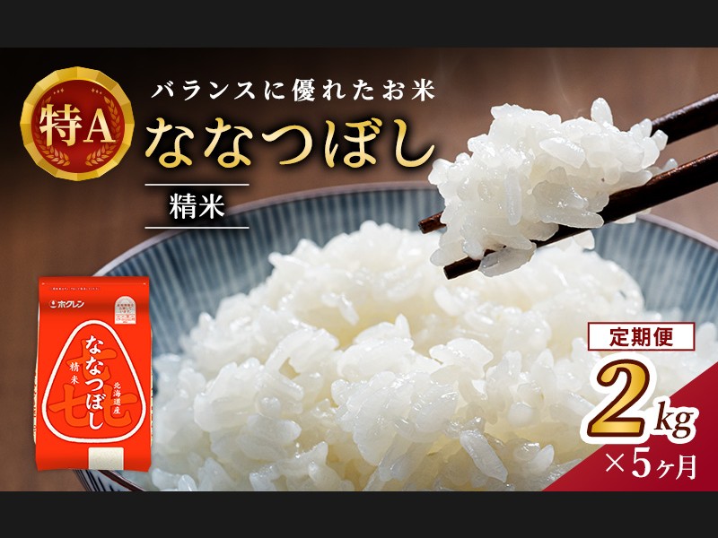 5ヵ月 定期便 (精米2kg)ホクレン喜ななつぼし(精米2kg×1袋)袋はチャック付...