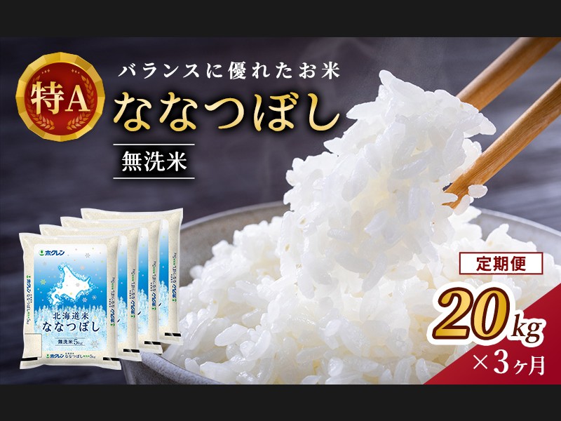 3ヵ月 定期便 (無洗米20kg)ホクレン北海道ななつぼし(無洗米5kg×4袋) 北海...